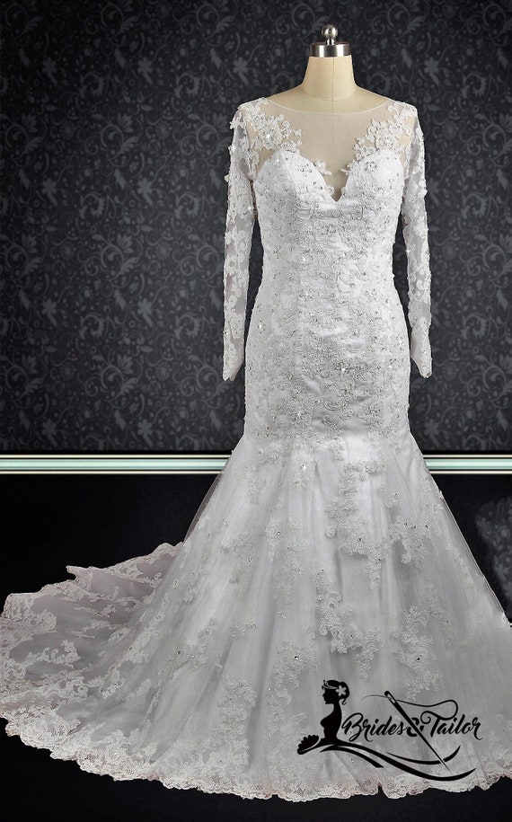 2018 Mermaid Wedding Dress Modest Unique Lace Long Sleeve Wedding Dres Demidress Com from cdn.shopify.com
